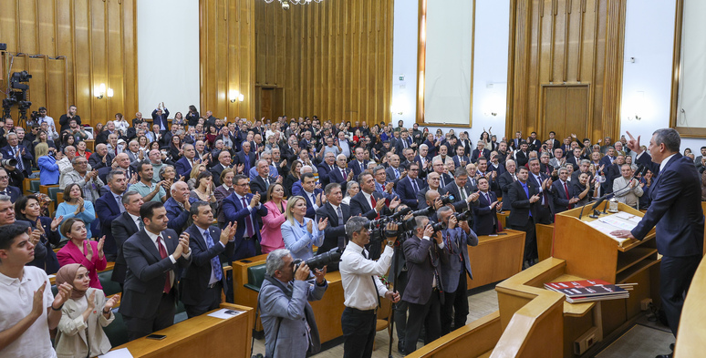 “Değerli milletvekillerimiz, değerli konuklar bildiğiniz gibi 9-12 Ekim tarihleri arasında geniş bir heyetle yurtdışındaydık. İlk olarak İspanya’da, başkent Madrid’de Sosyalist Enternasyonal’in Prezidyum toplantısına katıldık. Aynı gün toplantı öncesi İspanya Başbakanı ve Sosyalist Enternasyonal Başkanı Pedro Sanchez ile bir ikili görüşme gerçekleştirdik. Hem dünyada solun, sosyal demokratların içinde bulunduğu süreci, dünya siyasetini, ikimizin de çok yakından takip ettiği Gazze’de yaşananları; hem de emekçilerin, emeğin hakkını, alın terini savunan, her türlü sömürüye, adaletsizliğe karşı duran, sosyal demokratların, sosyalistlerin mücadelesini nasıl daha yukarıya taşıyacağımızı, bunu yaparken de birilerinin toplumu, halkları birbirine düşman ederek, toplumu kutuplaştırarak, devlet yönetmek yerine gücü yönetme anlayışına karşı nasıl birlikte mücadele edeceğimizi konuştuk. Ardından da tüm kardeş partilerimizle birlikte çok verimli bir toplantı yaptık. Belçika’nın başkenti Brüksel’e geçtik. 19 Mart sivil darbe girişiminin sonrasında Türkiye’nin dört bir yanında gecesiyle - gündüzüyle, yazıyla - kışıyla, güneşin - dolunun altında 60 eylem gerçekleştirmiştik. Yurtdışındaki soydaşlarımızdan davet vardı ve 61’ncisini Brüksel meydanında gerçekleştirdik. Avrupa’daki yurttaşlarımız oradaydı. Dayanışma gösteren, yanımızda olan hem vatandaşlarımıza, hem kardeş partilerimize, hem de Avrupa’nın bütün demokratlarına yürekten teşekkür ediyoruz. Madrid ve Brüksel programlarımız yurt içinden ve yurt dışından büyük ilgi gördü. İlgi gösterenlerin başında da Sayın Erdoğan var. Çünkü Sayın Erdoğan öyle bir anlayışa sahip ki. ‘Geçmişte kendisine helal olan, şimdi onun yönettiği ülkede muhalefete haramdır. Onun sevabı bizim günahımız olacak. O ne yapmışsa geçmişte yapmış olacak ama bugüne gelince o her şeyi yapacak, muhalefet susacak. O bir çerçeve çizecek, muhalefet onun içinde yapılacak. Çizdiği sınırların dışına çıkılmayacak. Her türlü kötülük, her türlü hak ihlali, her türlü zulüm sessizlikle karşılanacak. O iktidarını sürdürecek, bir taraf acı çekmeye, sömürülmeye devam edecek.’ O devir kapandı, hiç kusura bakmasın o devir kapandı.”